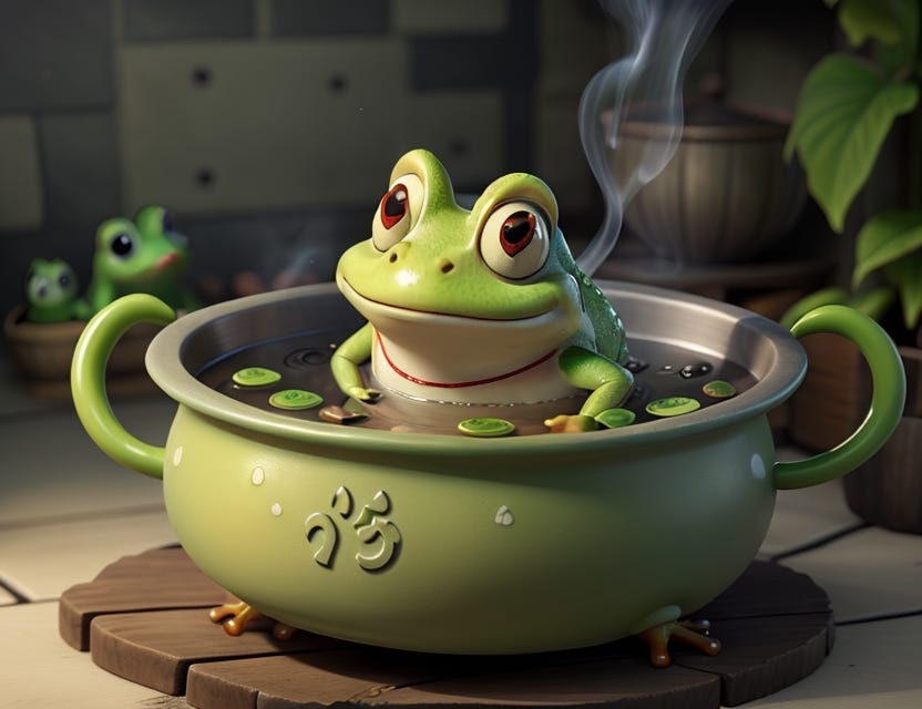 Now, in the second part, the scientist decided to try something different. He put the frog in lukewarm water and slowly turned up the heat.